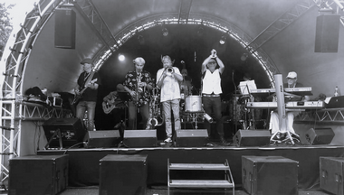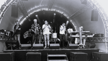 Für Engagements in kleineren Lokalen oder im Freien können wir auf Wunsch die Musikanlage zur Beschallung mitbringen.